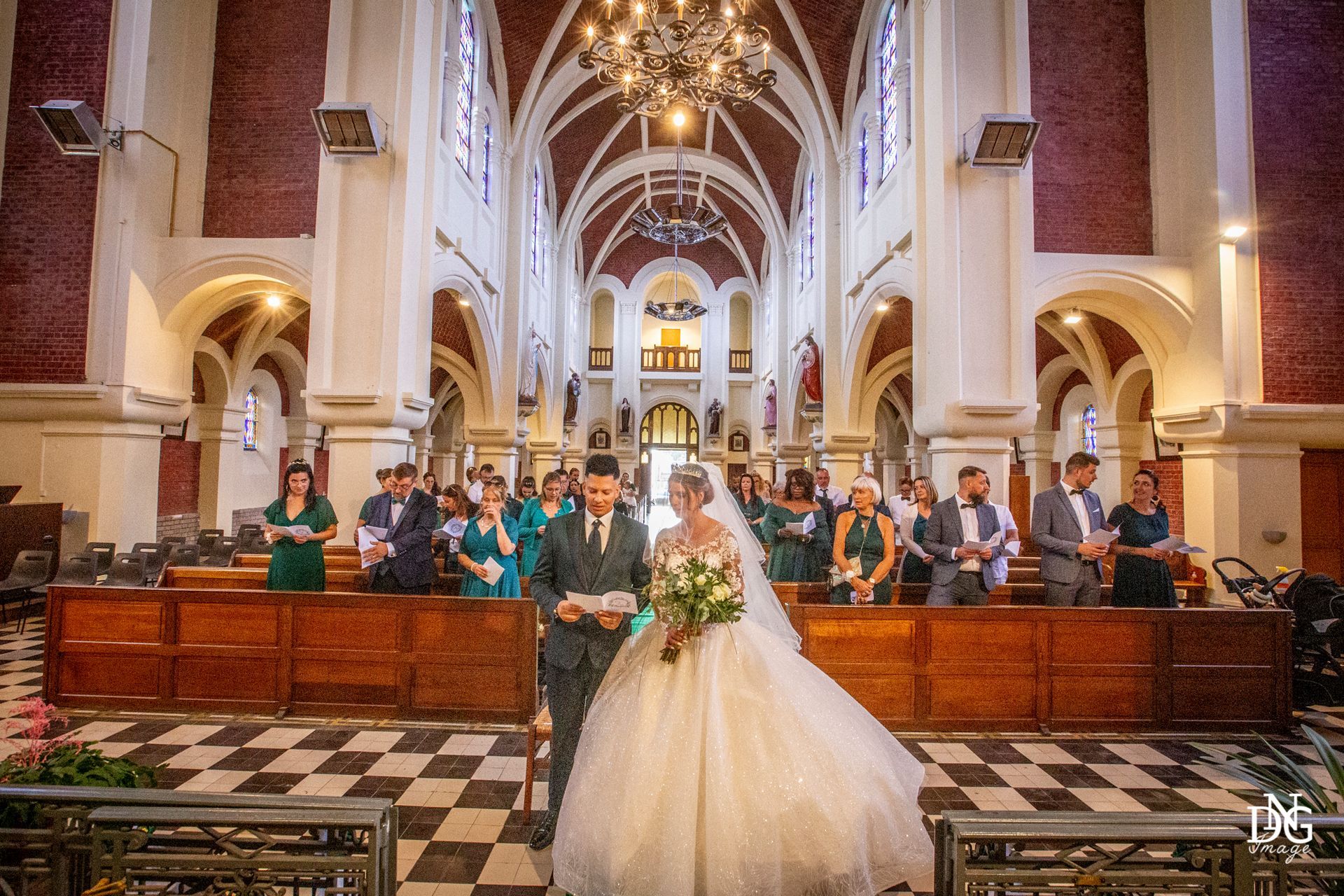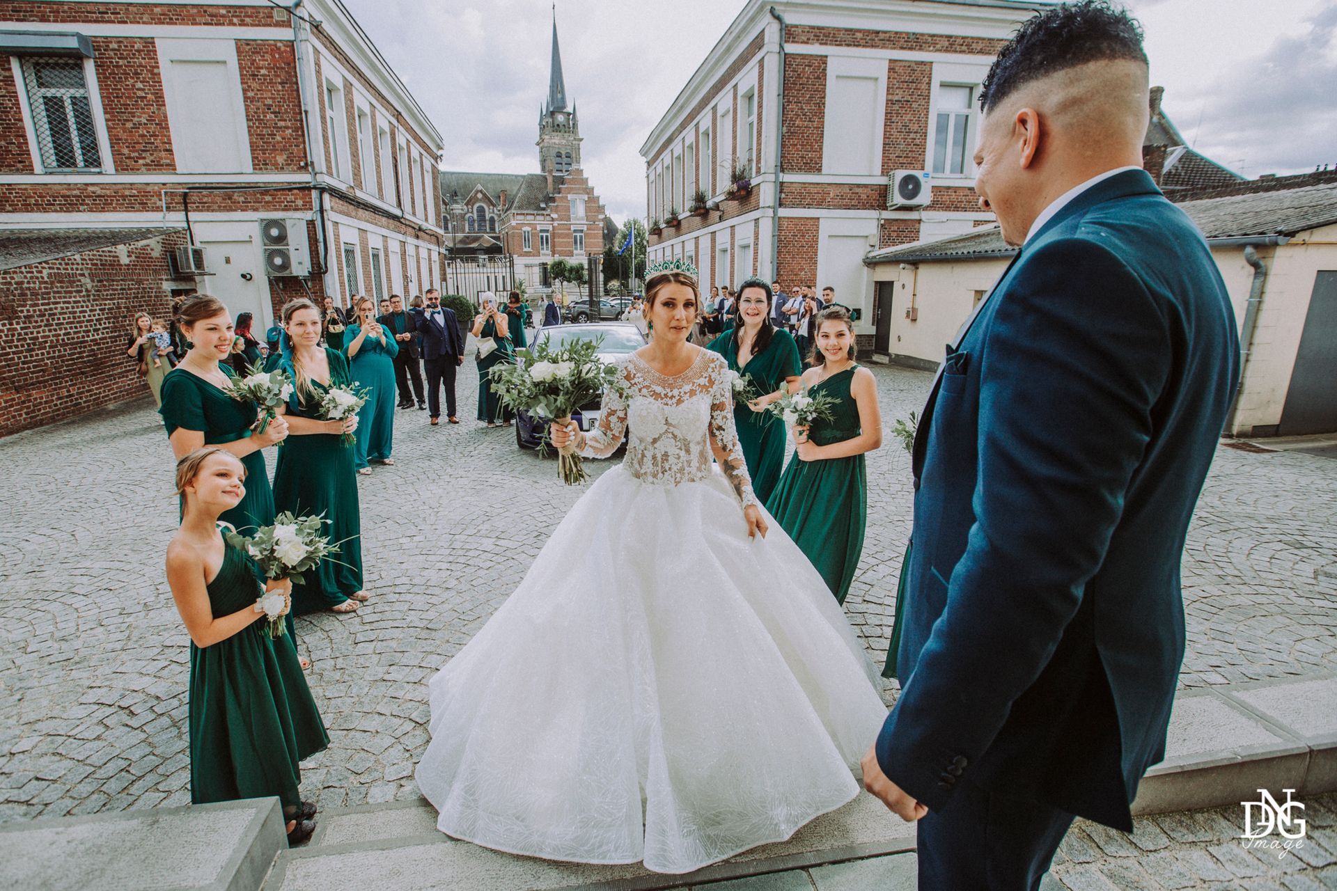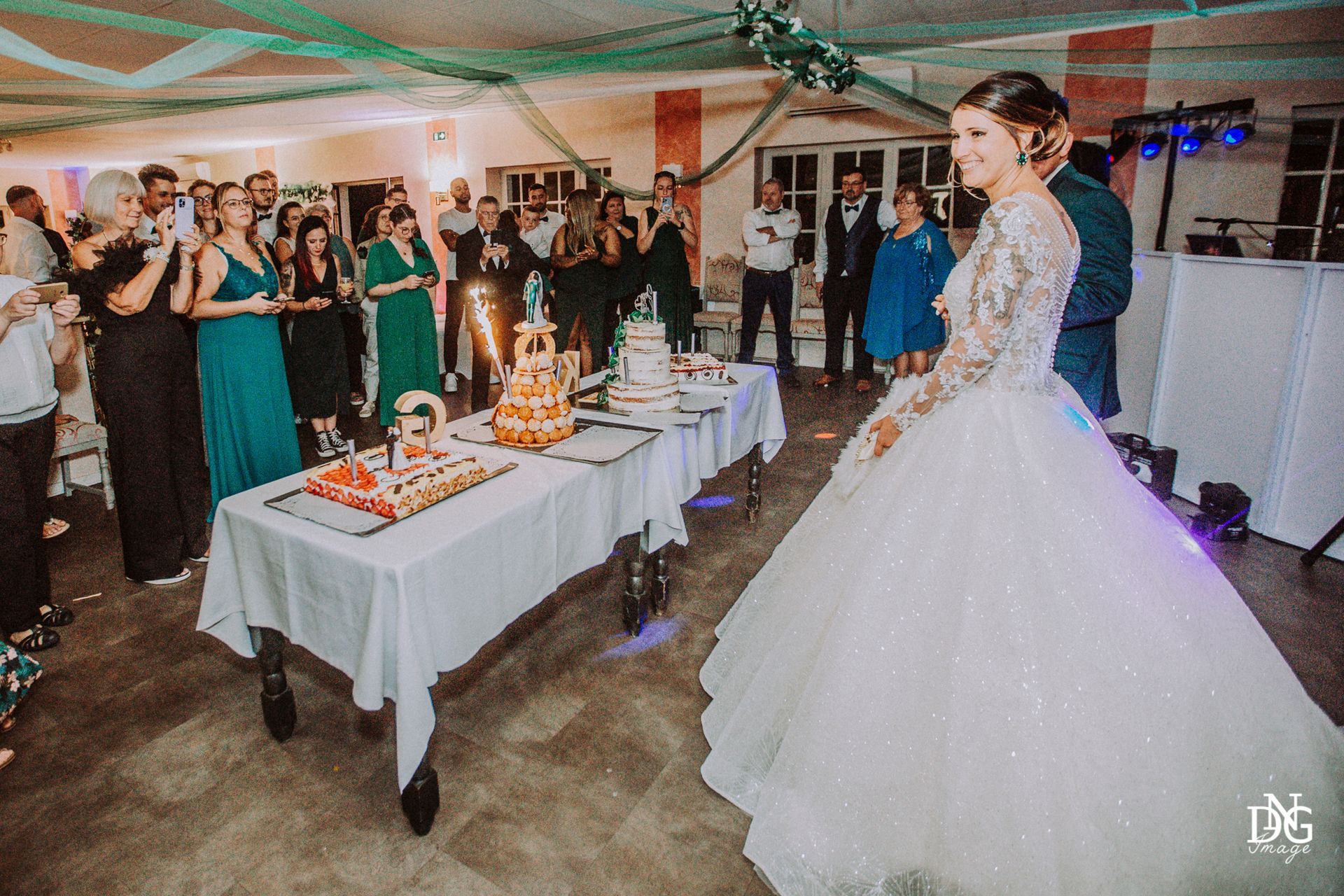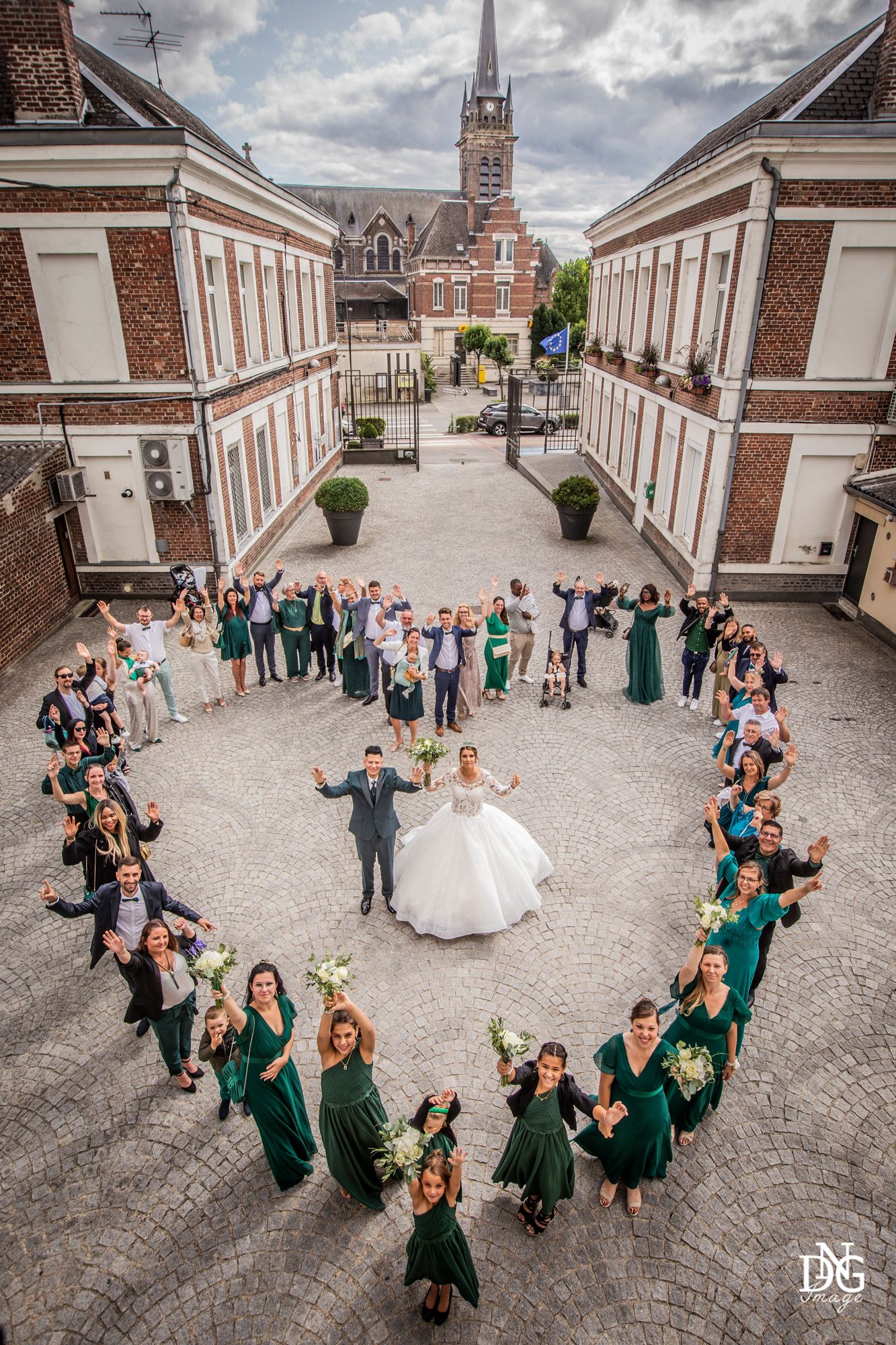 Le reportage photo commence par les préparatifs de la mariée sur le lieu de réception, qui dispose de chambres d'hôtel. Viens ensuite la cérémonie à la mairie, nous prenons le temps de faire une photo du haut du balcon de la mairie avec touis les invités, le fameux "coeur". Viennent ensuite les photos de la cérémonie religieuse, puis le vin d'honneur et le jeté de bouquet, l'entrée des mariés et la soirée, qui se termine pour moi par la découpe du gâteau.