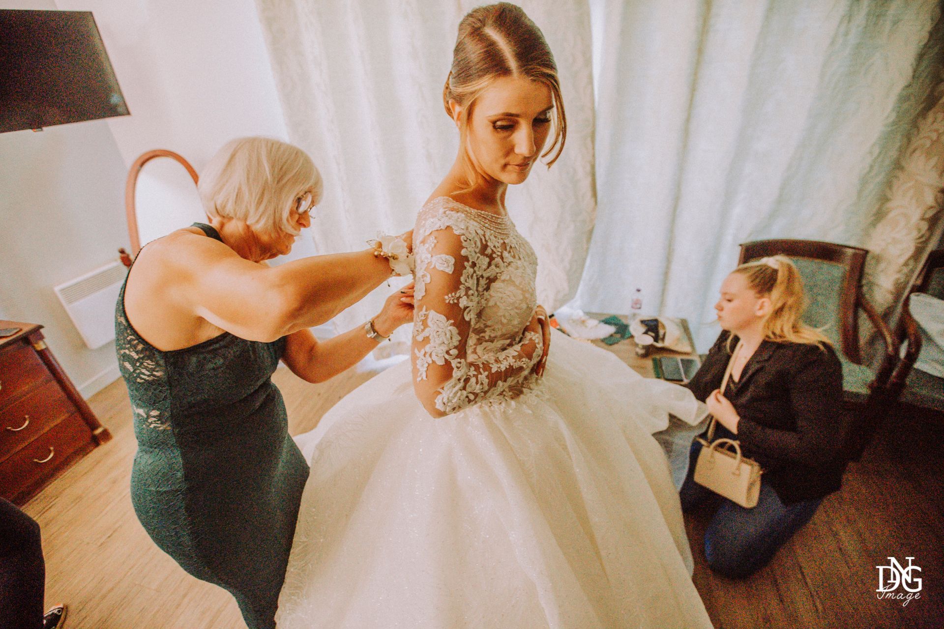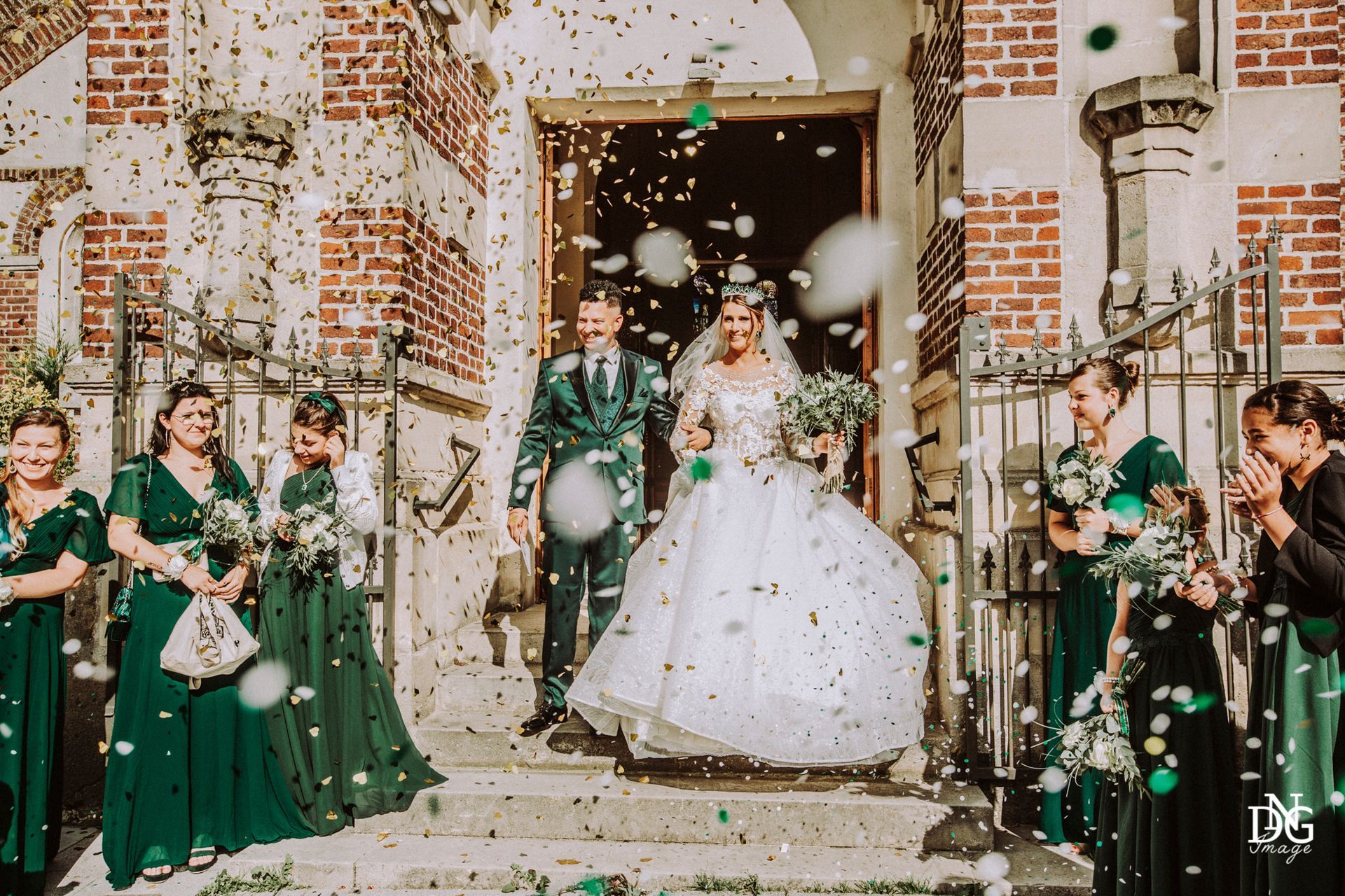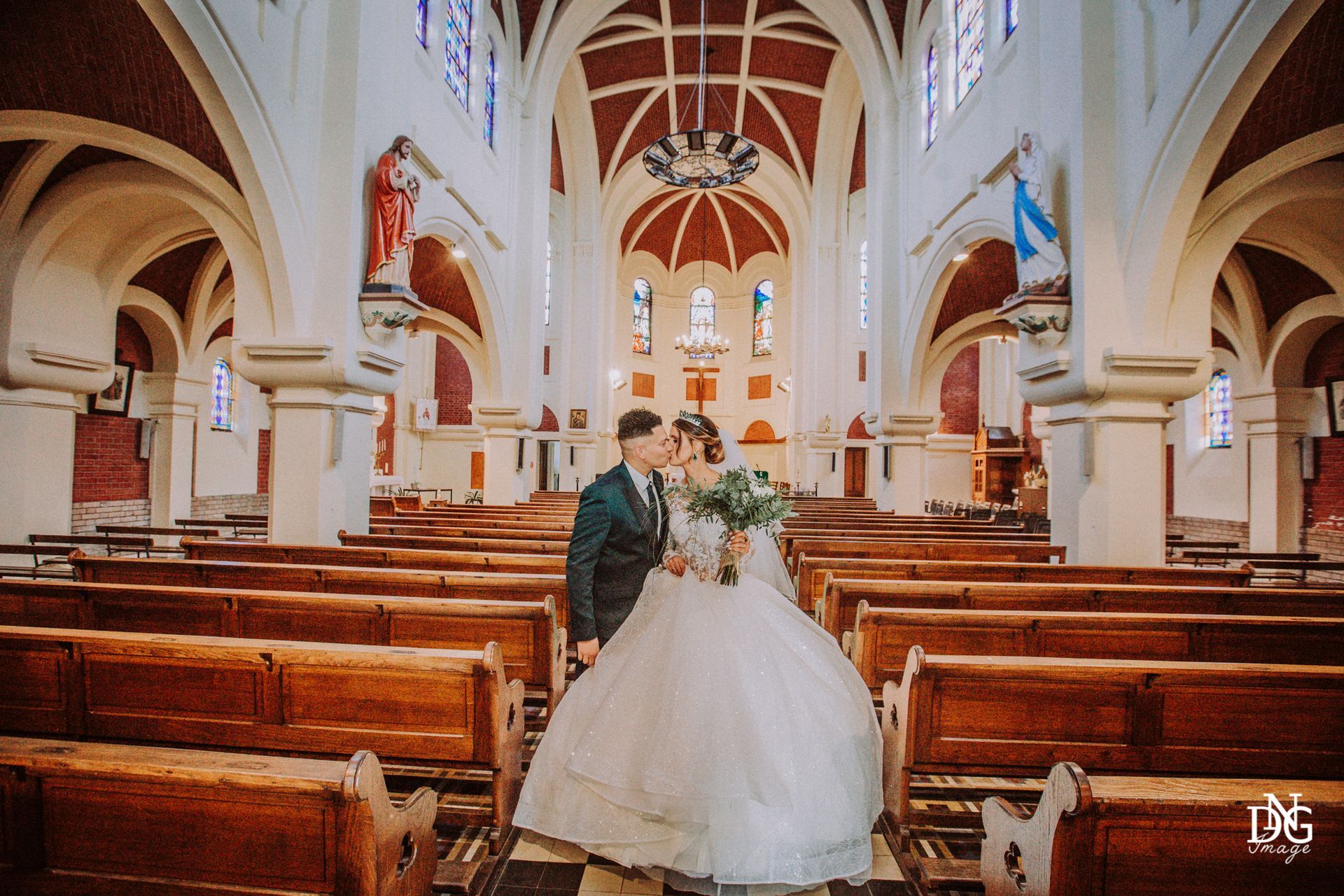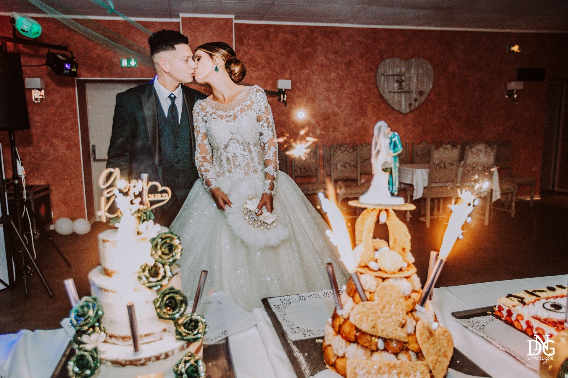 Le reportage photo commence par les préparatifs de la mariée sur le lieu de réception, qui dispose de chambres d'hôtel. Viens ensuite la cérémonie à la mairie, nous prenons le temps de faire une photo du haut du balcon de la mairie avec touis les invités, le fameux "coeur". Viennent ensuite les photos de la cérémonie religieuse, puis le vin d'honneur et le jeté de bouquet, l'entrée des mariés et la soirée, qui se termine pour moi par la découpe du gâteau.