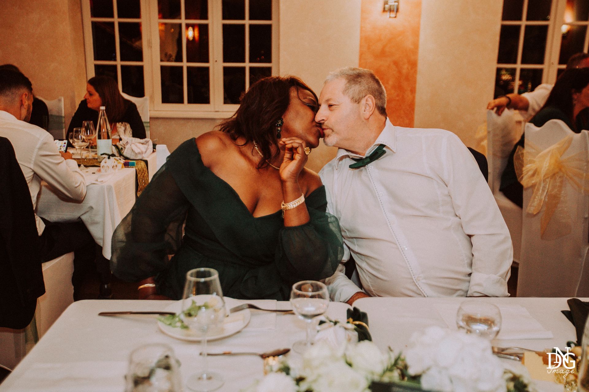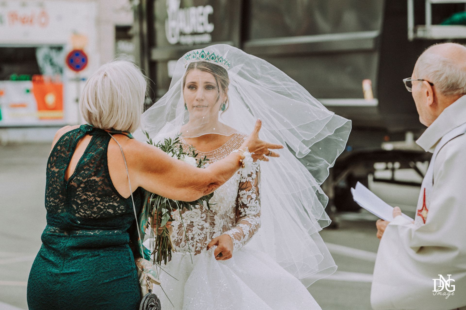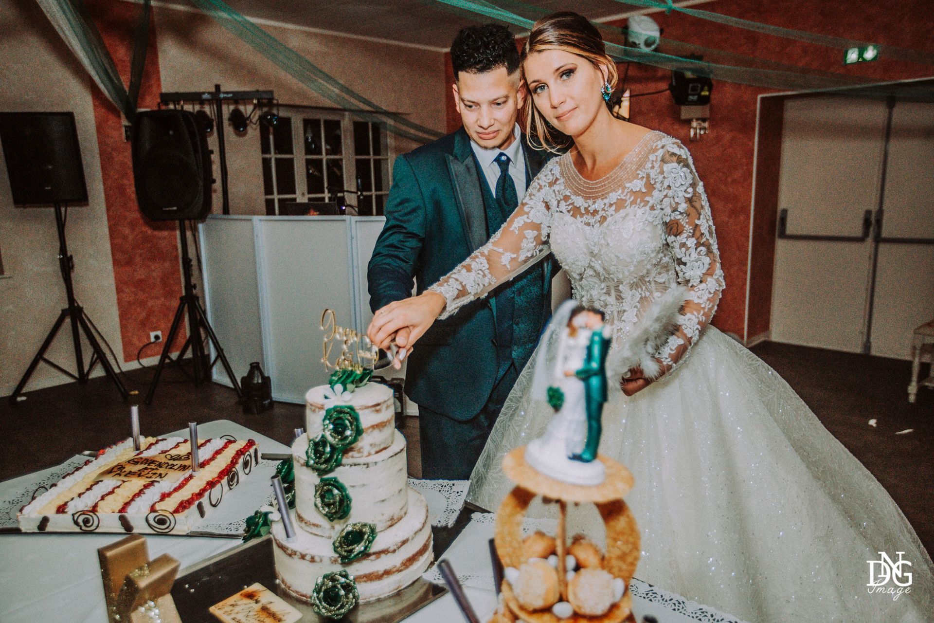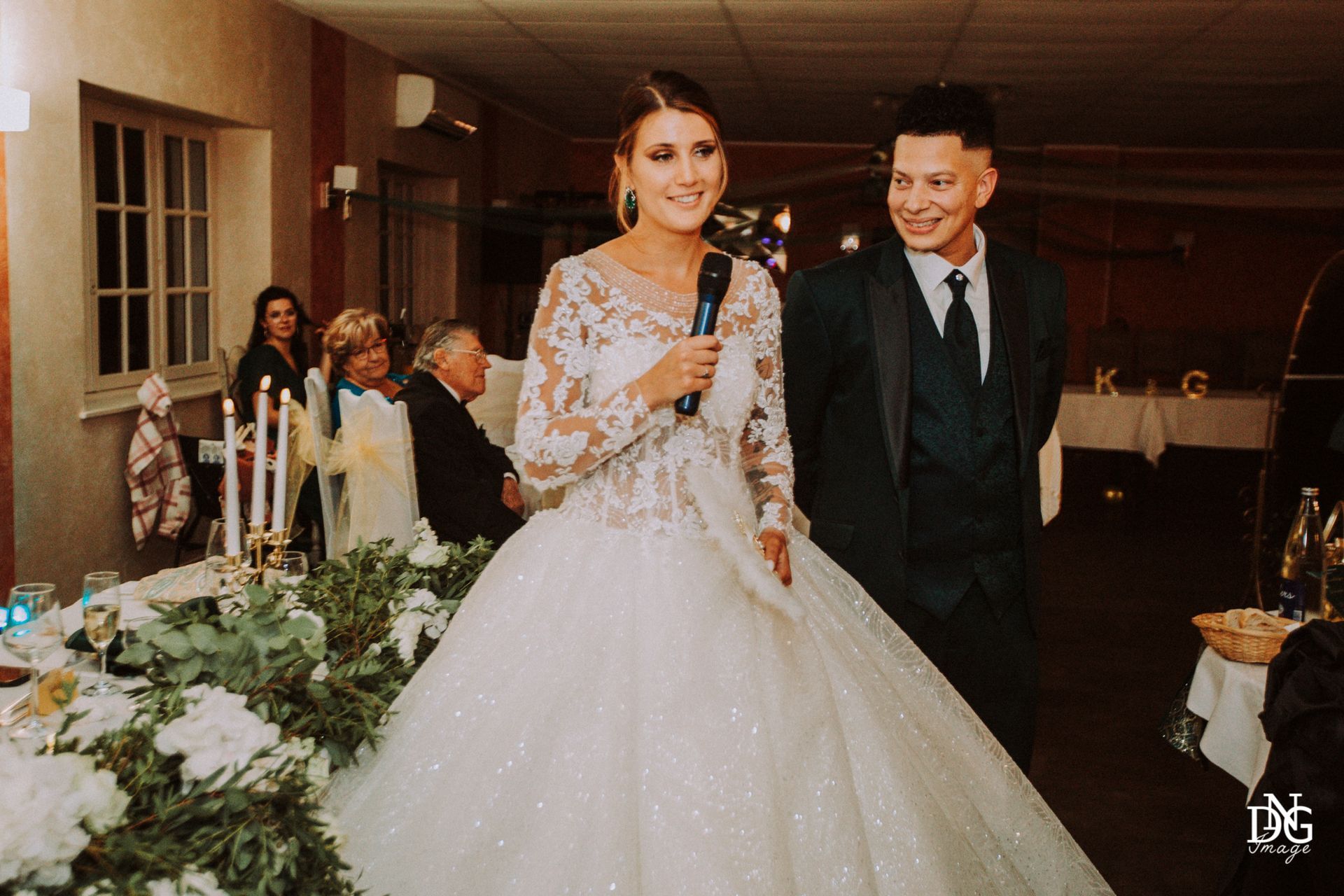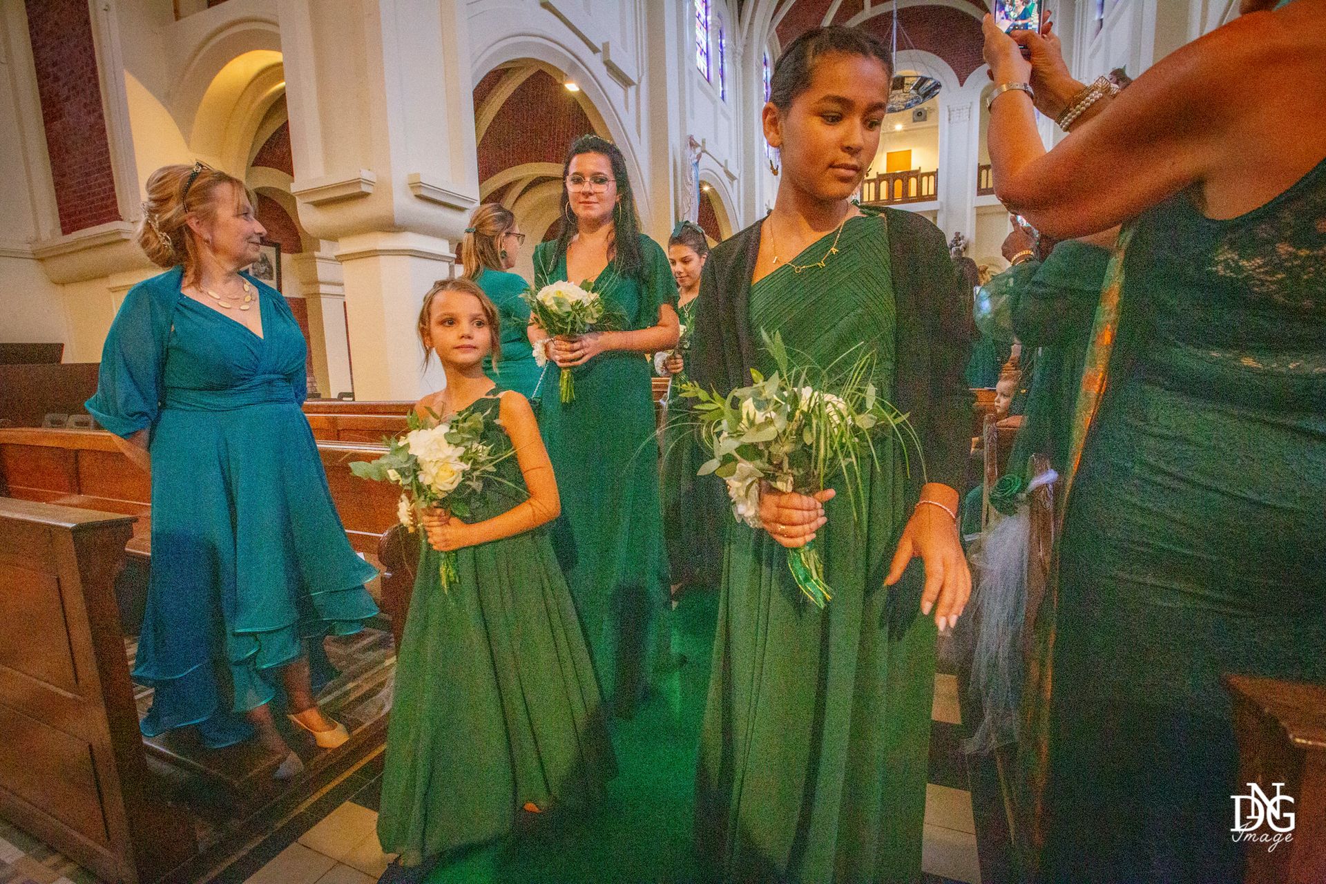 Le reportage photo commence par les préparatifs de la mariée sur le lieu de réception, qui dispose de chambres d'hôtel. Viens ensuite la cérémonie à la mairie, nous prenons le temps de faire une photo du haut du balcon de la mairie avec touis les invités, le fameux "coeur". Viennent ensuite les photos de la cérémonie religieuse, puis le vin d'honneur et le jeté de bouquet, l'entrée des mariés et la soirée, qui se termine pour moi par la découpe du gâteau.
