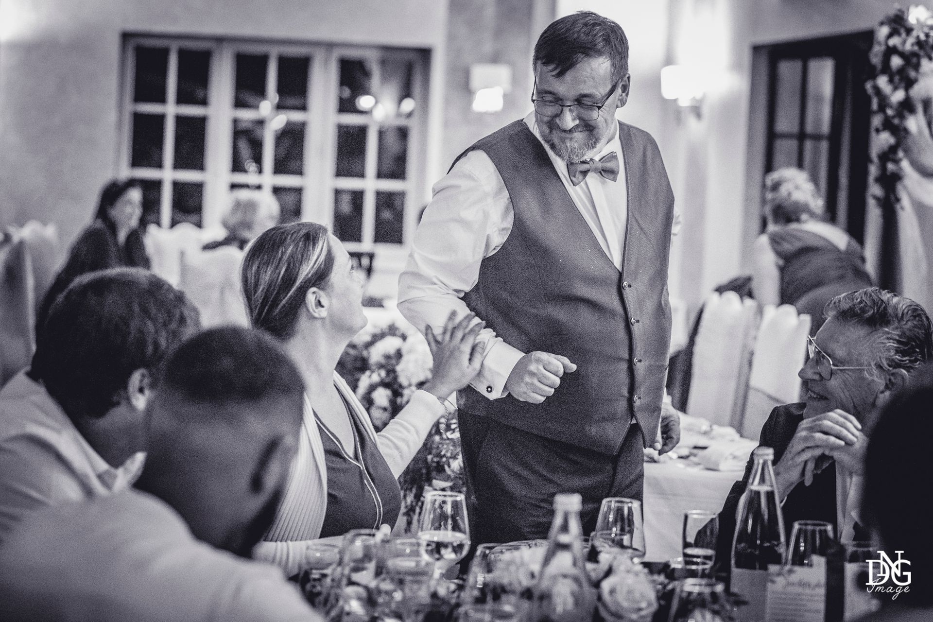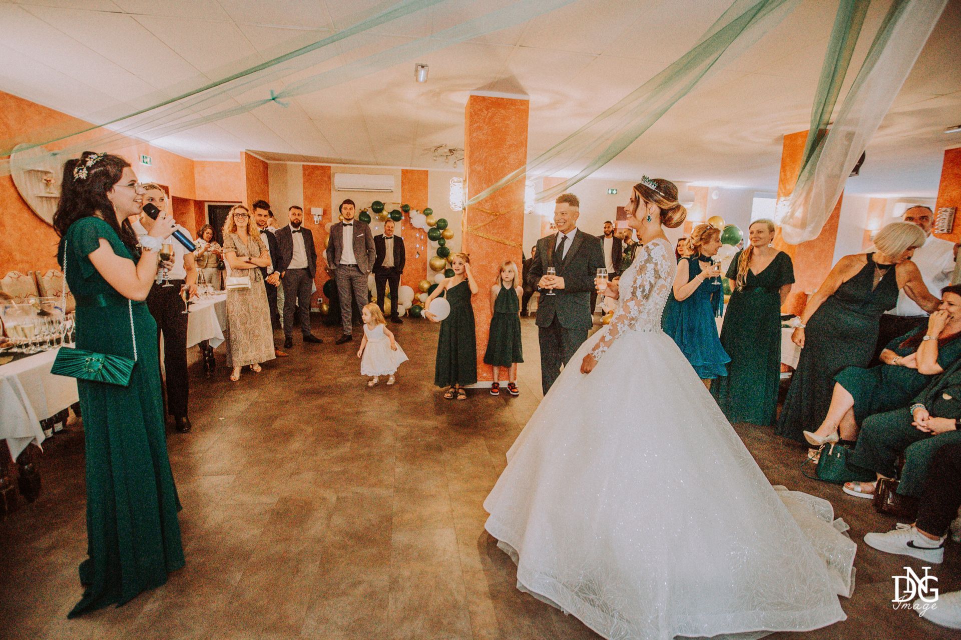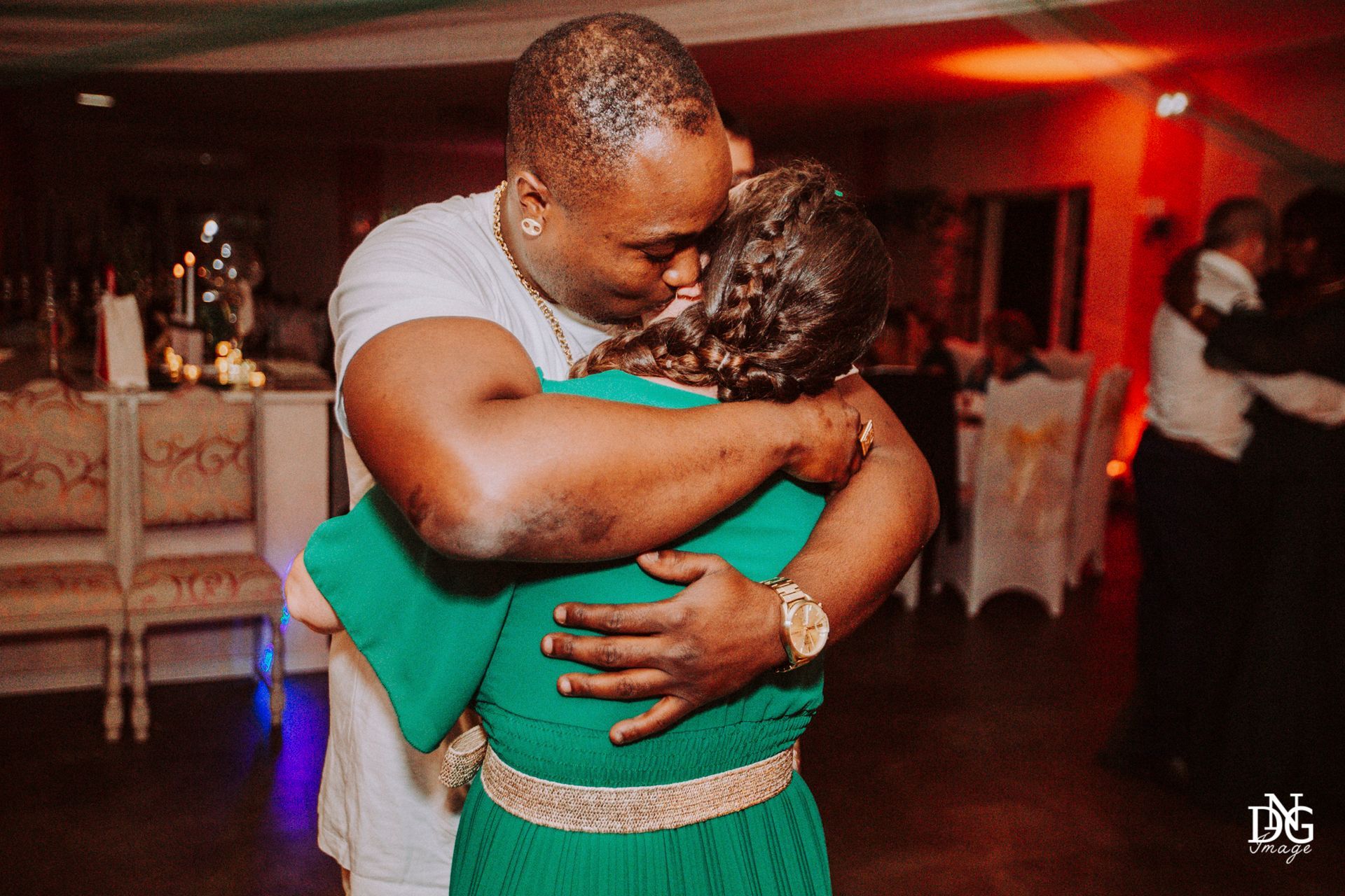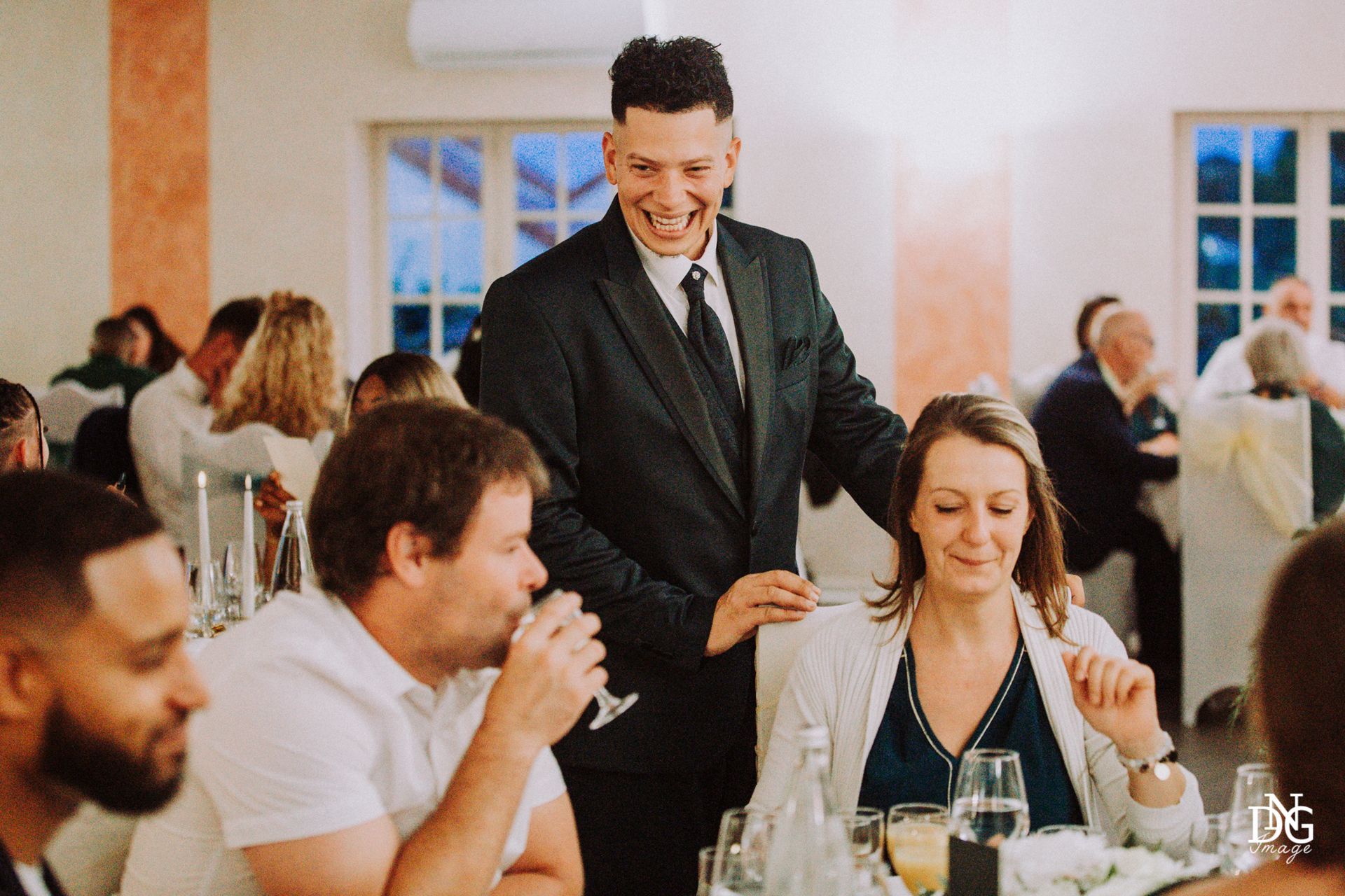 Le reportage photo commence par les préparatifs de la mariée sur le lieu de réception, qui dispose de chambres d'hôtel. Viens ensuite la cérémonie à la mairie, nous prenons le temps de faire une photo du haut du balcon de la mairie avec touis les invités, le fameux "coeur". Viennent ensuite les photos de la cérémonie religieuse, puis le vin d'honneur et le jeté de bouquet, l'entrée des mariés et la soirée, qui se termine pour moi par la découpe du gâteau.