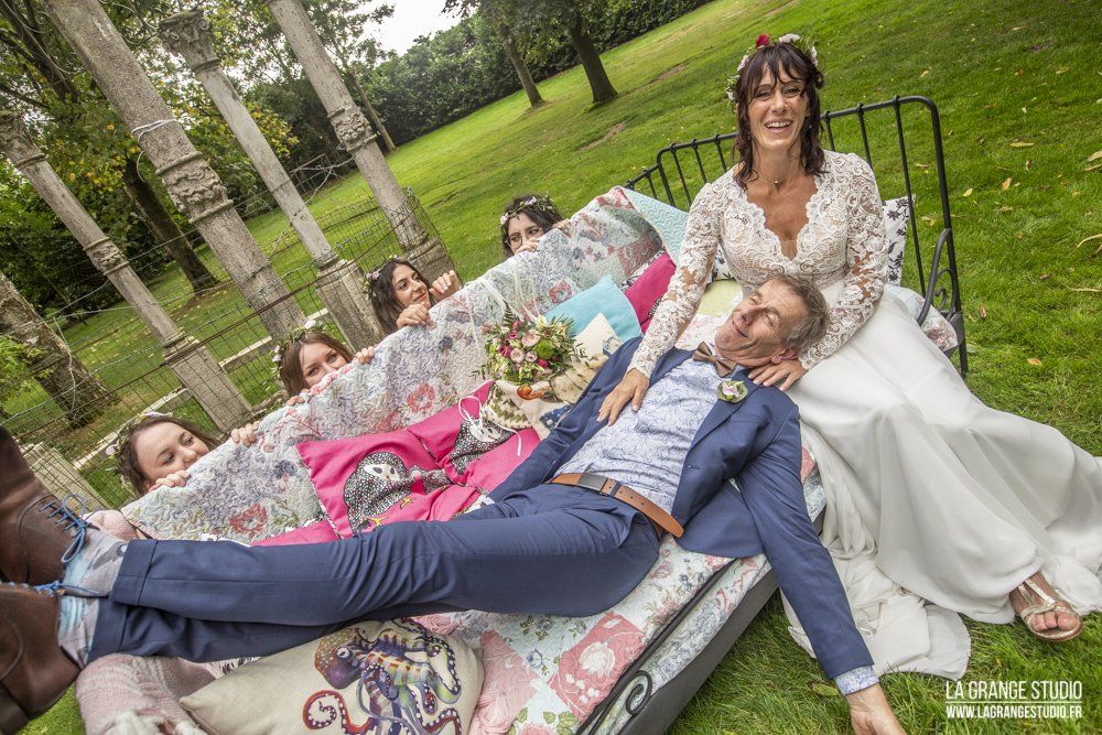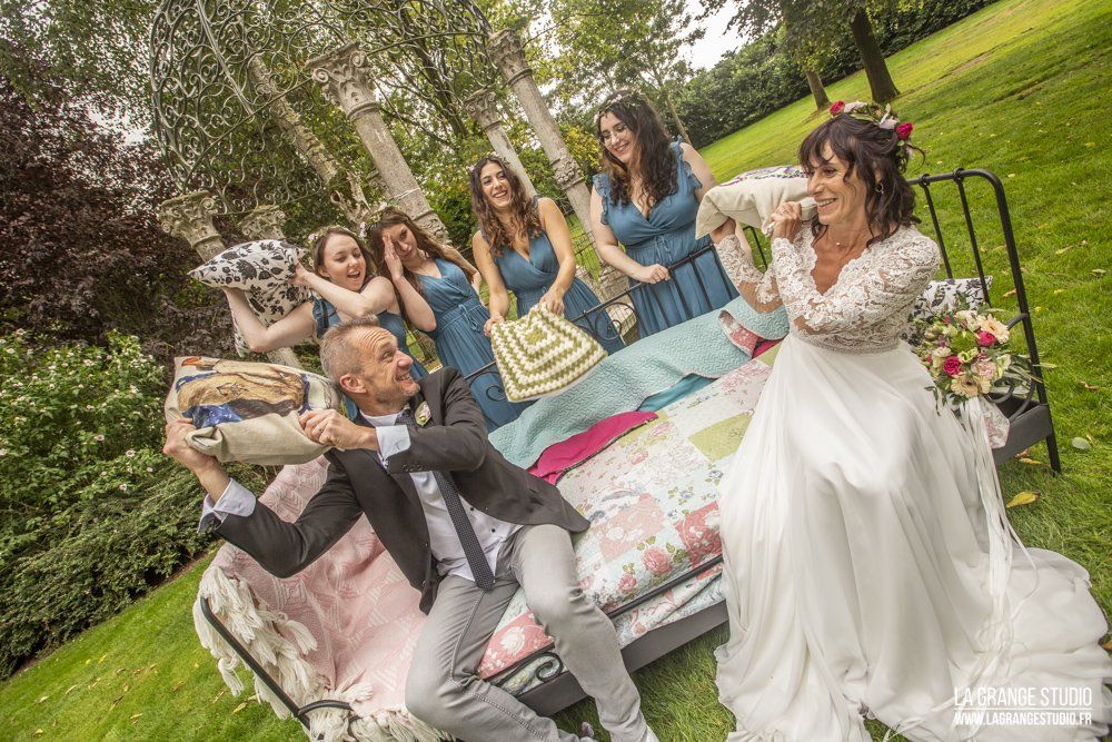 Le reportage photo commence par les préparatifs sur le lieu de réception à la Fontaine d'Inville qui dispose de chambre d'hôtes, puis coiffeur à Hermies en passant par la décoration de la voiture. Nous revenons sur le lieu de réception pour le passage de la robe. Viens ensuite la cérémonie à la Mairie de Hermies puis la cérémonie laïque, le vin d'honneur, la soirée et le gâteau dans cet endroit verdoyant et calme ...